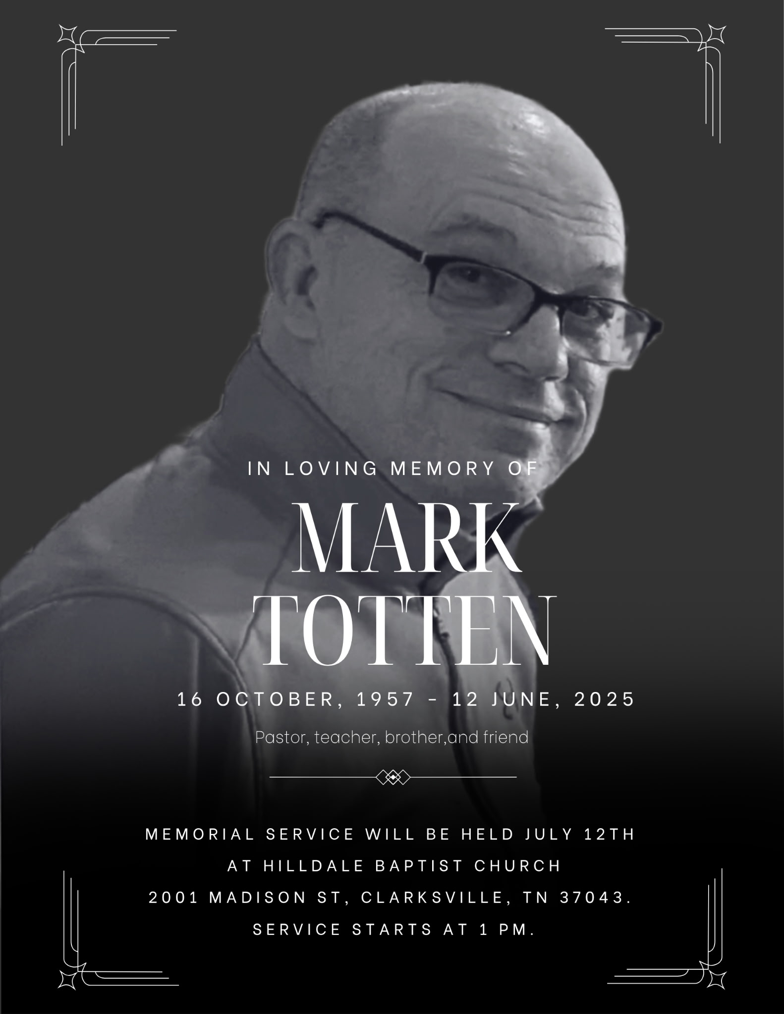 As a way to remember our dear pastor, we ask that you please use the Google Forms link below to upload your favorite pictures of Pastor Mark to be used at his memorial. Also, in the short-answer space on the form, please share date, location, occasion, and names of other people in the photos if you have that information. We will include as many pictures as time allows in the memorial service.